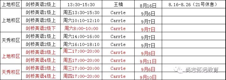 【尚志教育劍橋少兒課程表】