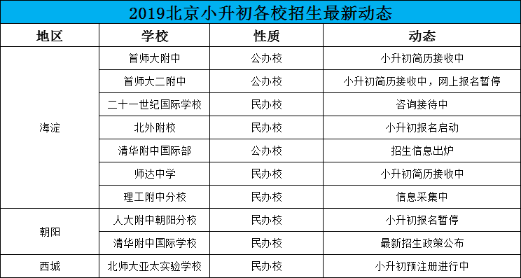 2019年小升初已有動態(tài)學校