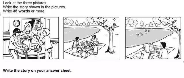 Part 7:看圖寫作為新增題型,根據(jù)三張圖片寫一段35字以上的故事;根據(jù)CEFR A2要求,重點考察考生語言描述與關(guān)聯(lián)能力。