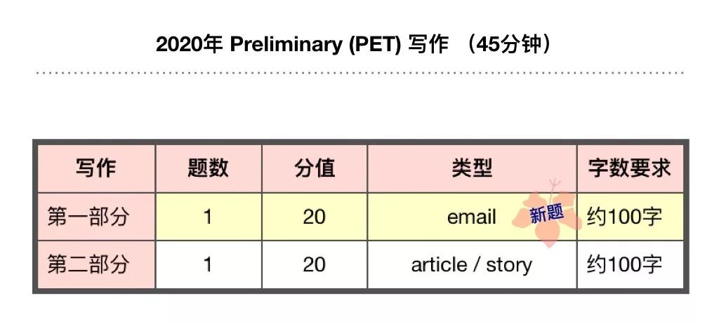 PET寫(xiě)作試卷第二部分進(jìn)行了調(diào)整,改成了選擇寫(xiě)作: