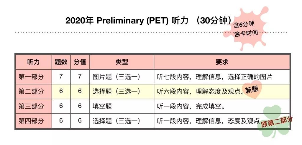 PET聽(tīng)力第四部分形式為2020年改革前第二部分;